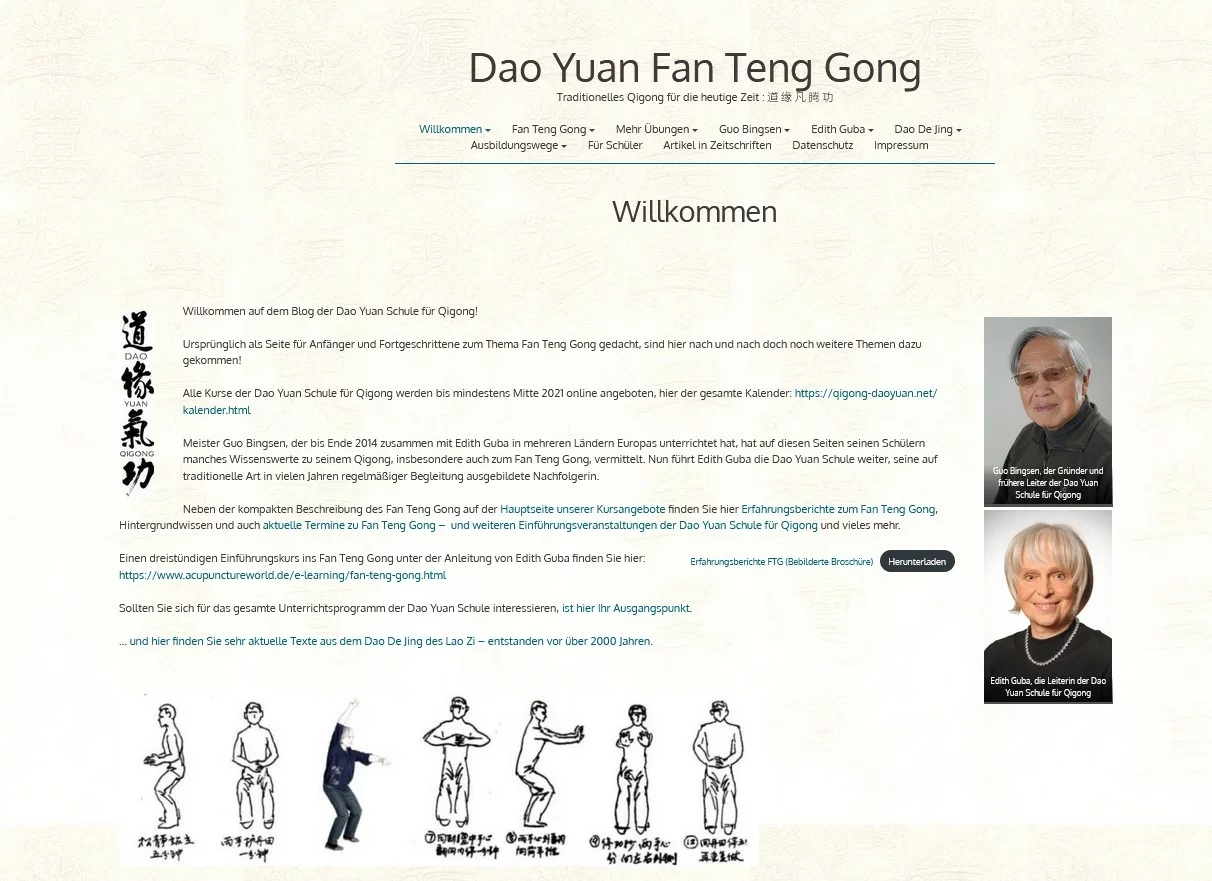 Die Seite "Dao Yuan Fan Teng Gong" mit vielen Hintergrundinformationen zum Qigong der Dao Yuan Schule wird überarbeitet. Bis auf Weiteres gibt es eine Weiterleitung auf diese Seite, die Hauptseite der Dao Yuan Schule. Wir bitten um etwas Geduld!